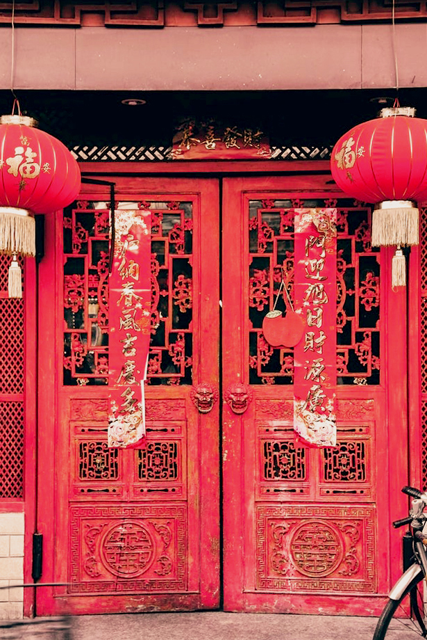 貼上爺爺親手寫的紅色春聯,