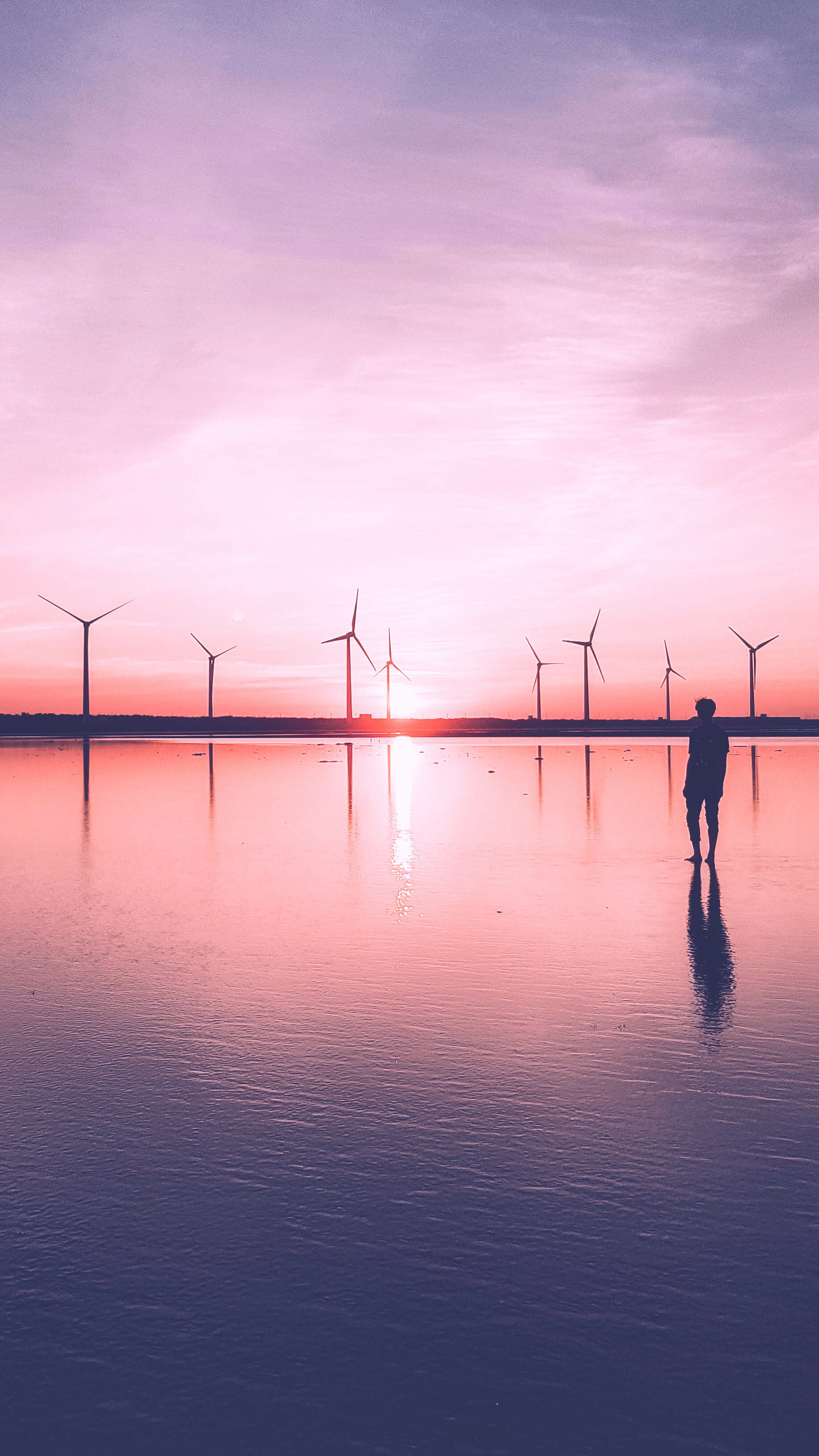 沼澤上透著暖橘色有層次的光,